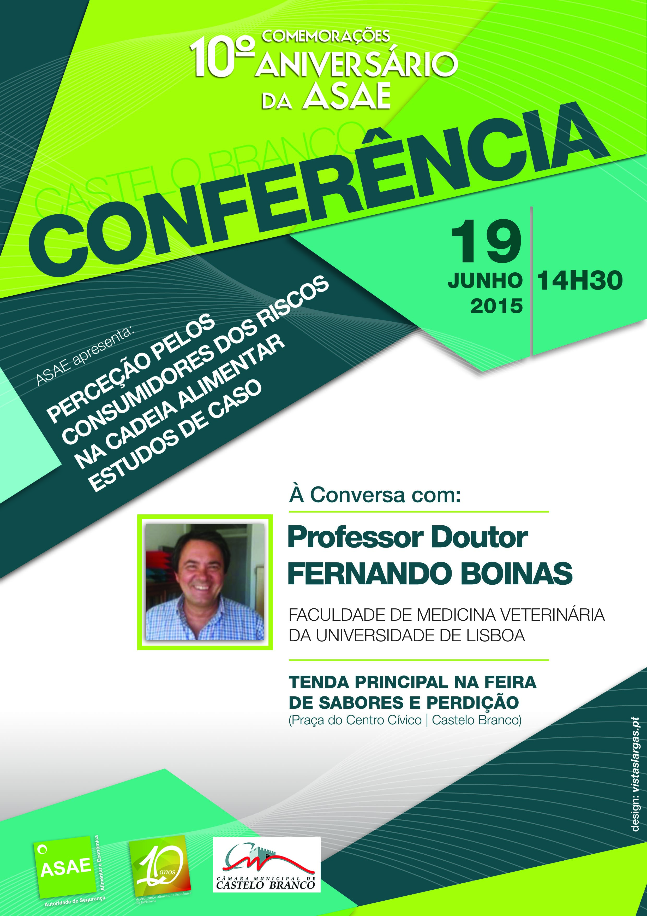 No âmbito das Comemorações do 10º aniversário da ASAE, decorreu em Castelo Branco, no dia 19 de junho, às 14.30 Horas, a Conferência "Perceção pelos Consumidores dos Riscos na Cadeia Alimentar Estudos de Caso", com a participação do Professor Doutor Fernando Boinas.